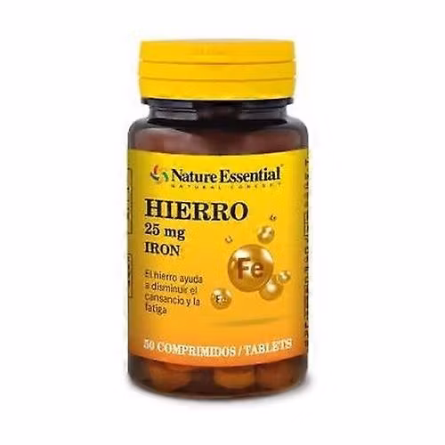 Järn 25 mg från Nature Essential är ett kosttillskott som bidrar till: normal kognitiv funktion, normal energiomsättning, normal bildning av röda blodkroppar och hemoglobin, normal syretransport i kroppen, normal immunförsvarsfunktion, minskning av trötthet och utmattning, celldelningsprocess. Detta kosttillskott hjälper till att tillgodose järnbehovet och är särskilt användbart vid anemi. Det rekommenderas som kosttillskott att ta 1 tablett per dag. Förvaras utom räckhåll för barn. Överskrid inte den rekommenderade dagliga dosen. Kosttillskott är inte avsedda att ersätta en varierad och balanserad kost och en hälsosam livsstil. Förvaras svalt och torrt.